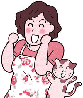某メーカーの給湯器の光熱費の安さに「やった!」と喜んでいる奥さんです。ああ、なんとさしさわりのないイラストなんでしょう。日本は平和だなあ。2色刷りチラシ用。